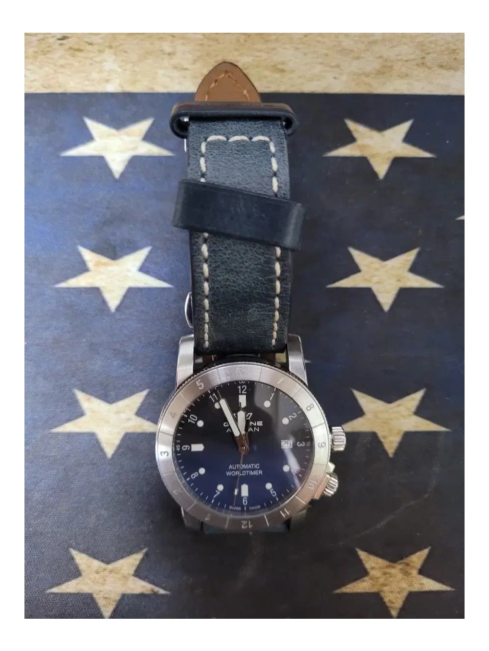 글라이신 오토 에어맨 월드타이머 블루 남자시계