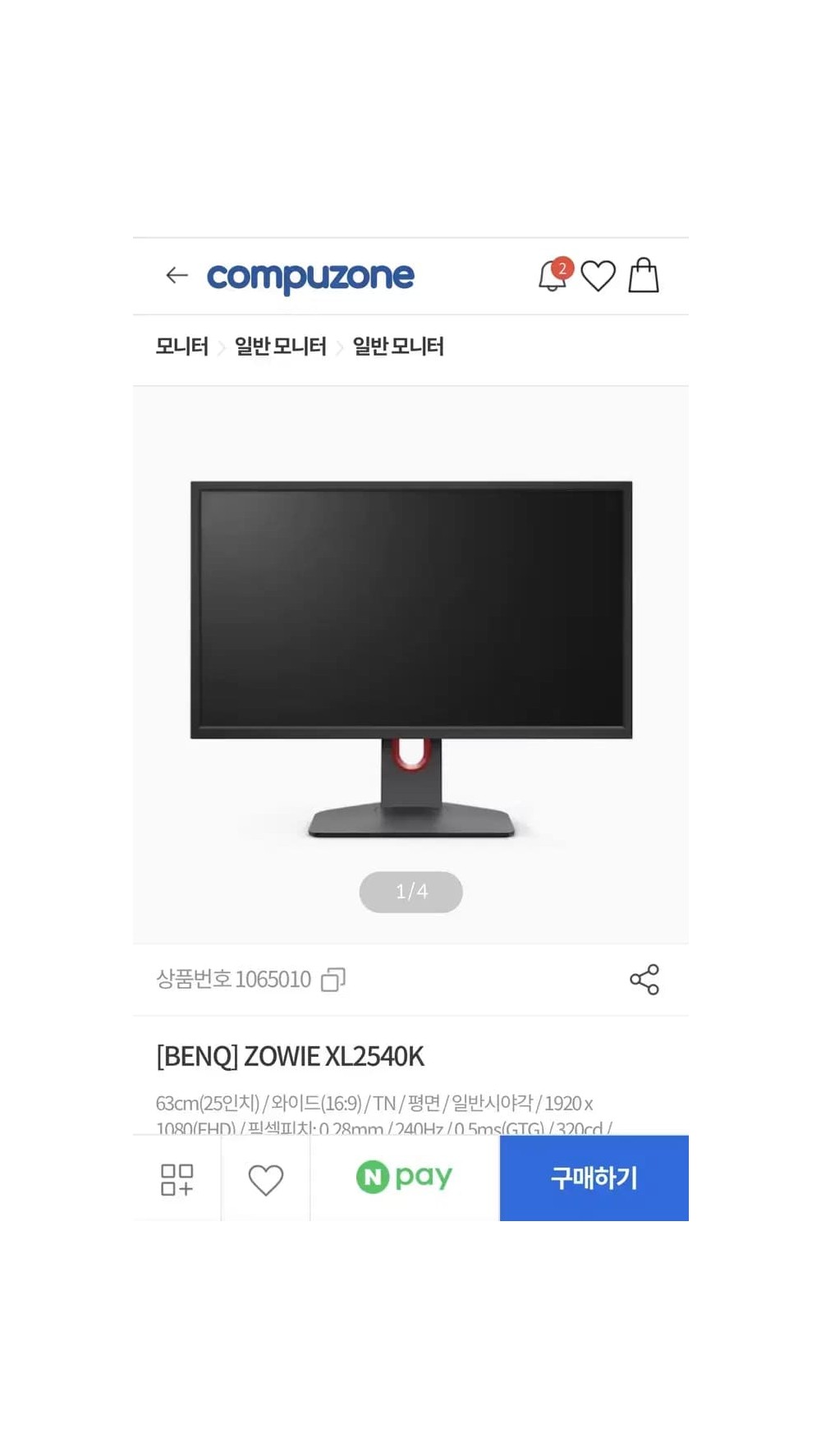 BenQ 벤큐 XL2540K 모니터 완전 새상품
